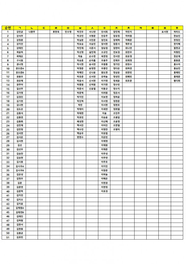 8월 17일(일) 휴일 자습 명단