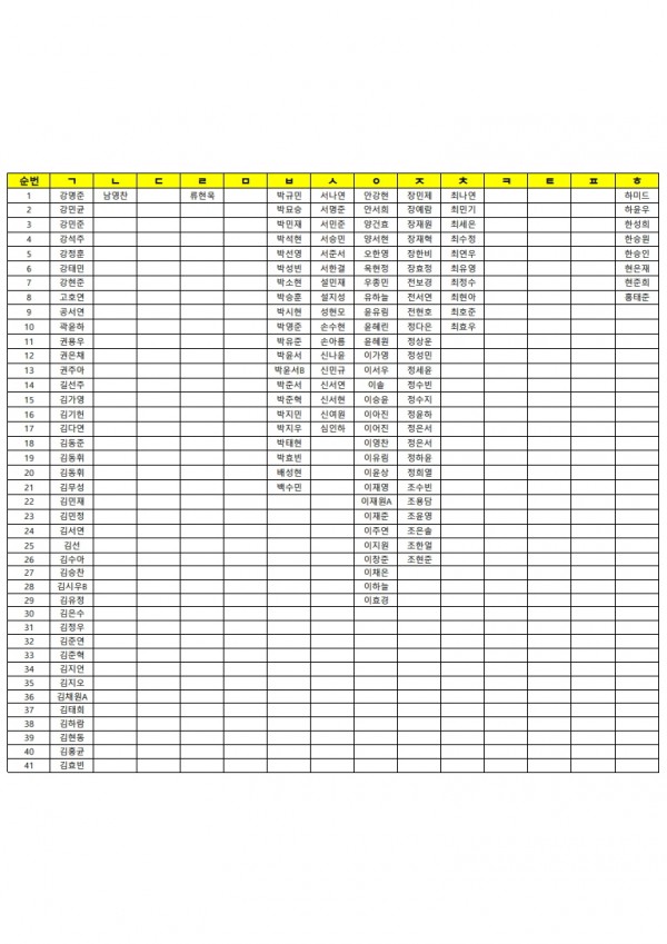 10월 6일(월)추석 연휴 자습 신청 명단