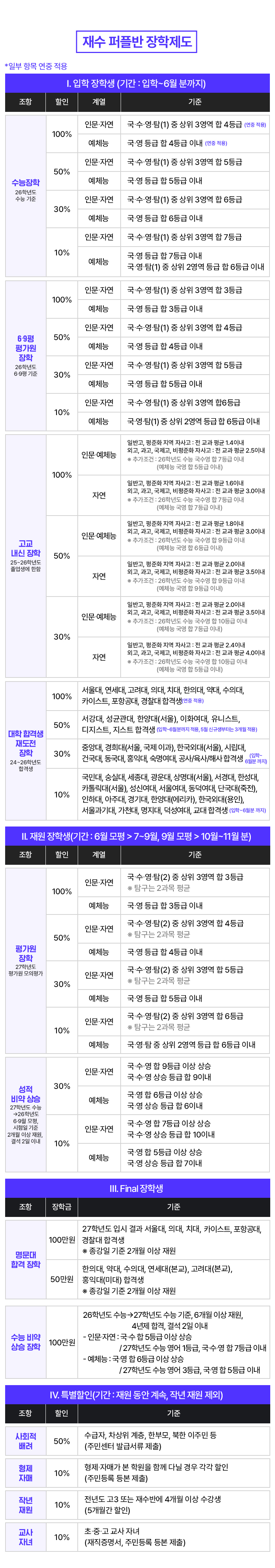 ※ 장학 혜택은 중복 적용되지 않으며, 학생에게 유리한 것 하나만 적용 가능합니다.