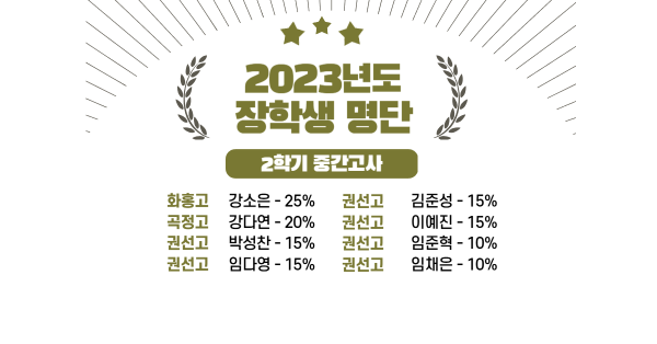 2023 고1 2학기 중간고사 장학생 명단
