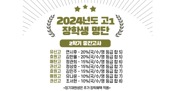 2024 고1 2학기 중간고사 장학생 명단