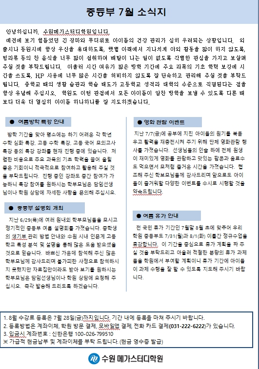 2023년 중등부 7월 소식지(가정통신문)