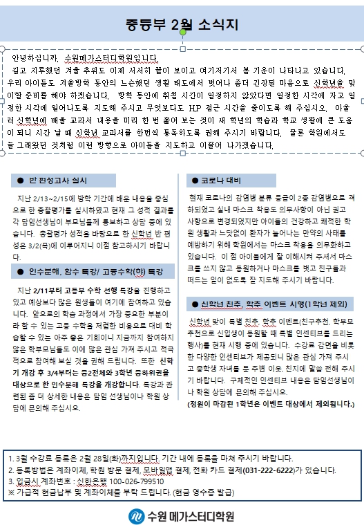 * 2월 등록기간은 2월 28일(화)일까지입니다.