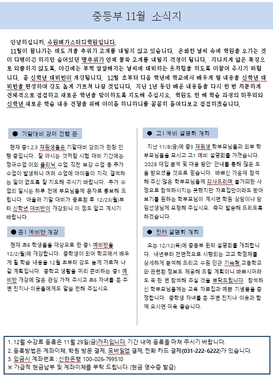 중등부 학원소식