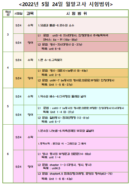 5월 월례고사 시험범위