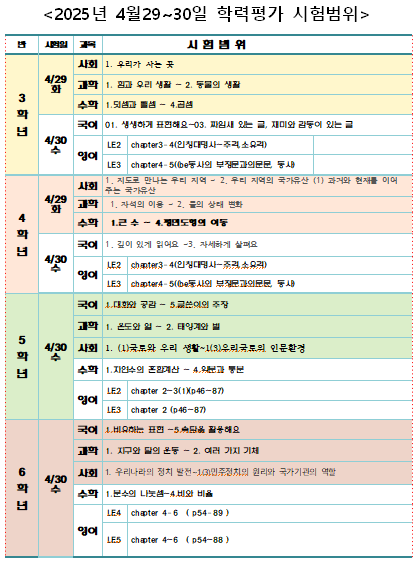 4월30일 중간학력평가 시험범위