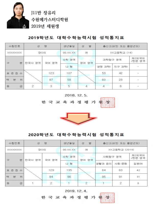 안녕하세요. 저는 수원 메가스터디에서 2018년 12월부터 2019년 11월까지, 1년 가까이 되는 시간동안 재수생활을 보낸 장유리입니다.