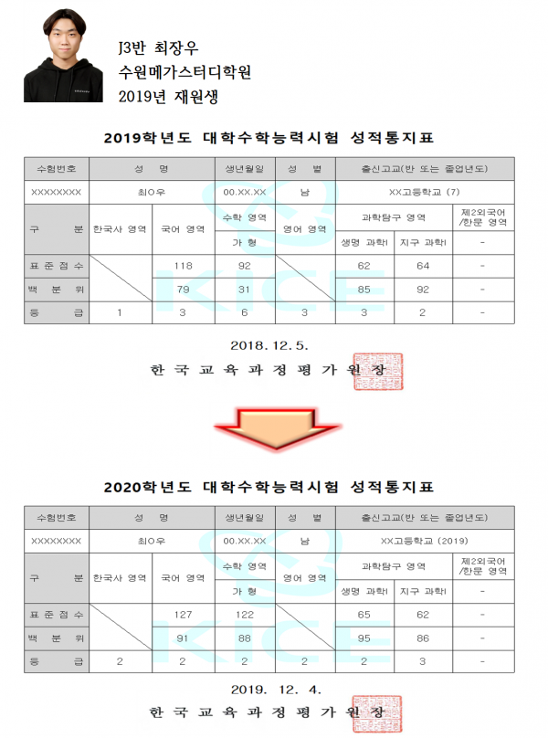 안녕하세요. J3반 최장우입니다. 우선 장학금을 받게 되어 너무 기쁩니다. 이렇게 좋은 수능성적을 받기까지의 과정이 쉽지는 않았습니다.