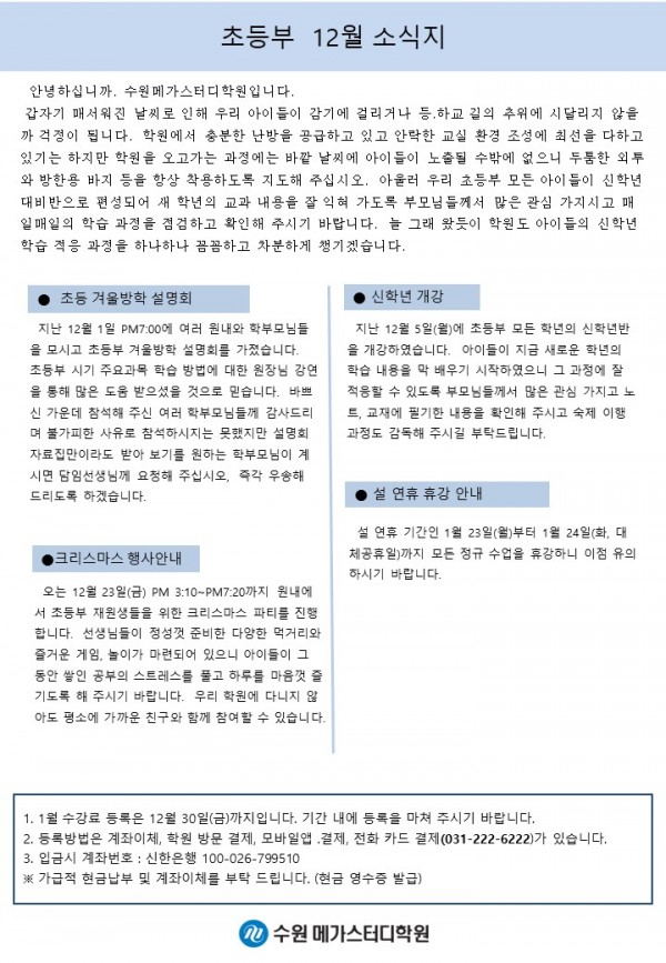 초등 [초등] 12월 가정통신문