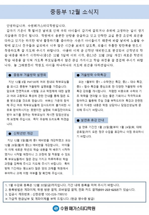 중등 [중등] 12월 가정통신문