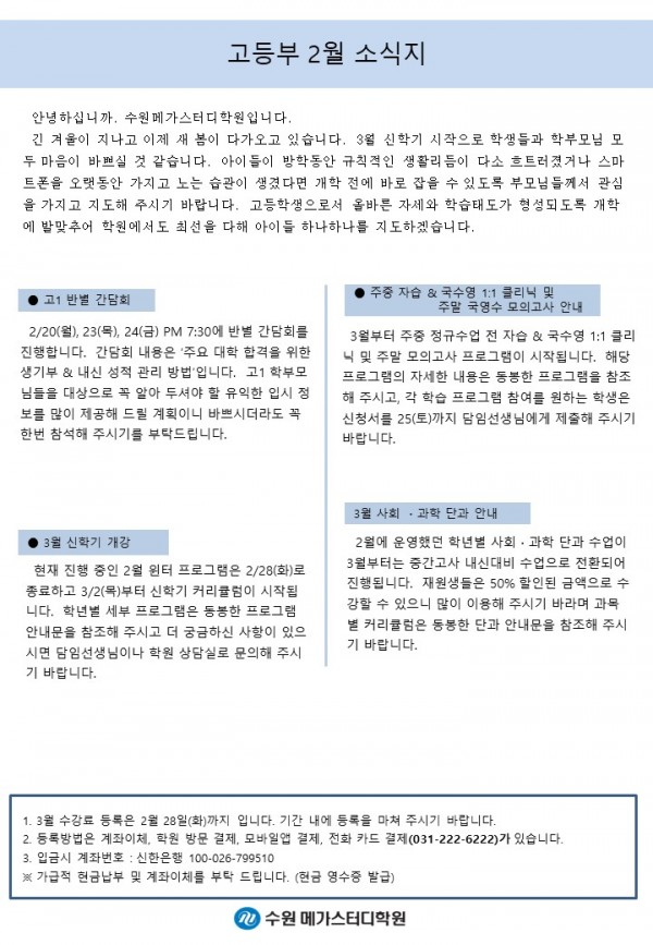 고등 [고등] 2월 가정통신문