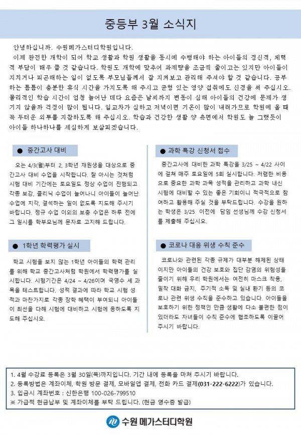 중등 [중등] 3월 가정통신문
