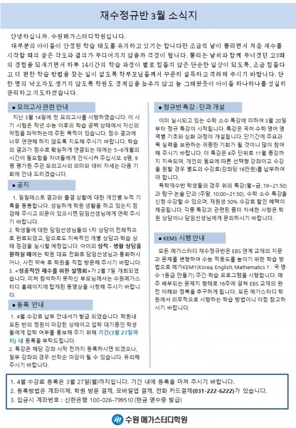 재수 [재정] 3월 가정통신문