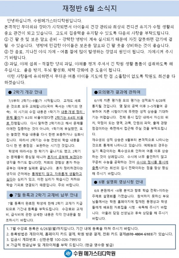 재수 [재정] 6월 가정통신문
