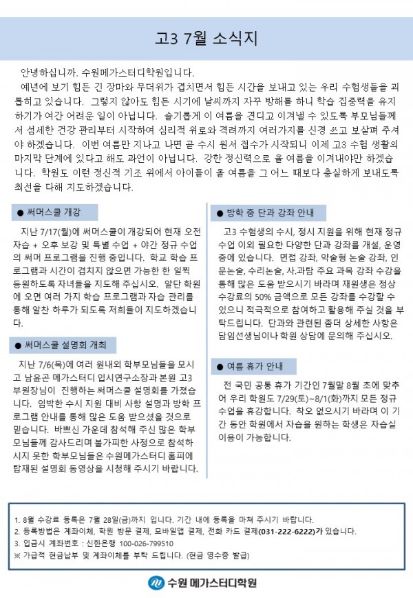 고등 [고3] 7월 가정통신문