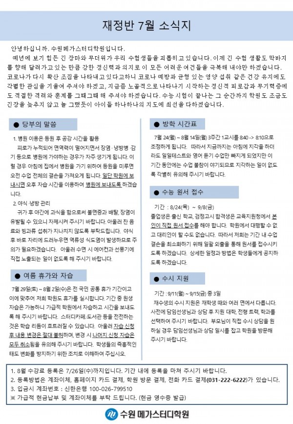 재수 [재정] 7월 가정통신문