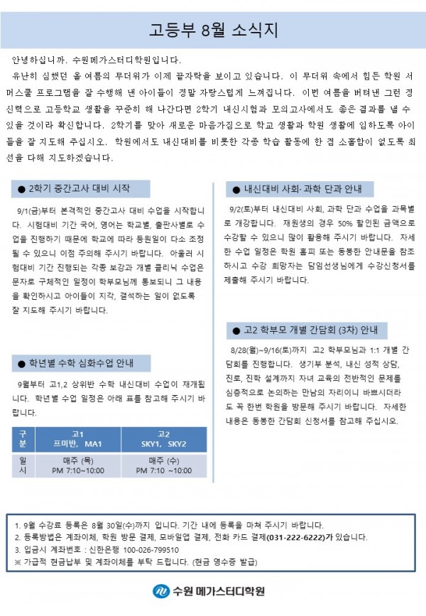 고등 [고등] 8월 가정통신문