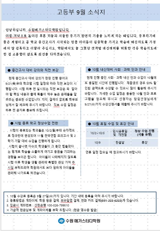 고등 [고등] 9월 가정통신문