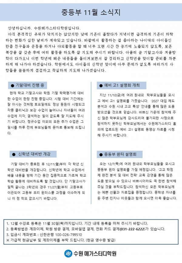 중등 [중등] 11월 가정통신문