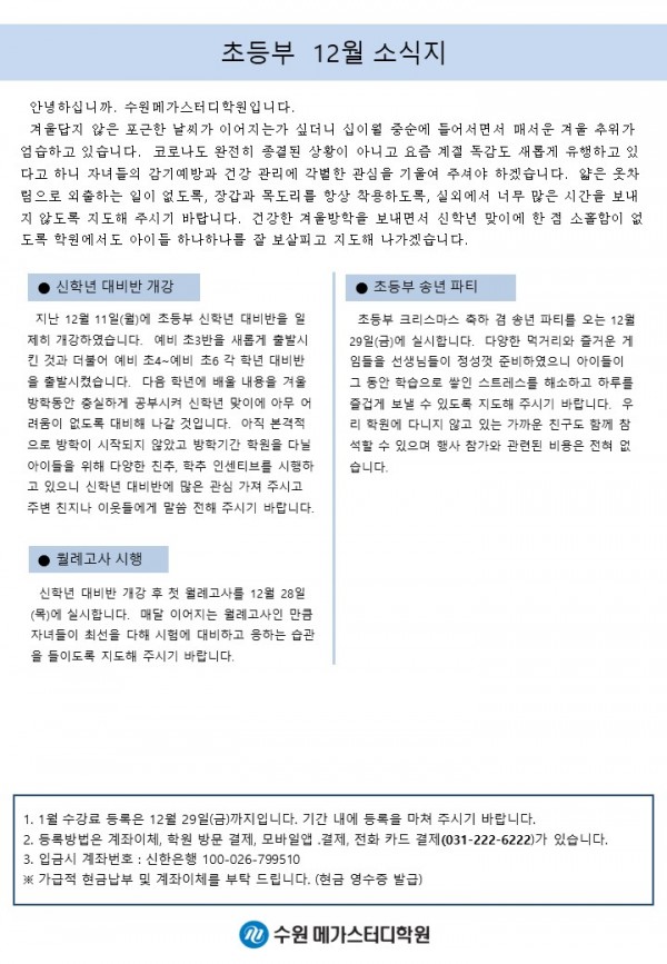 초등 [초등] 12월 가정통신문