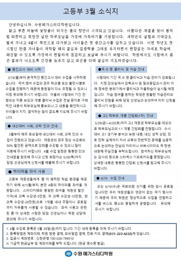 고등 [고등] 3월 가정통신문