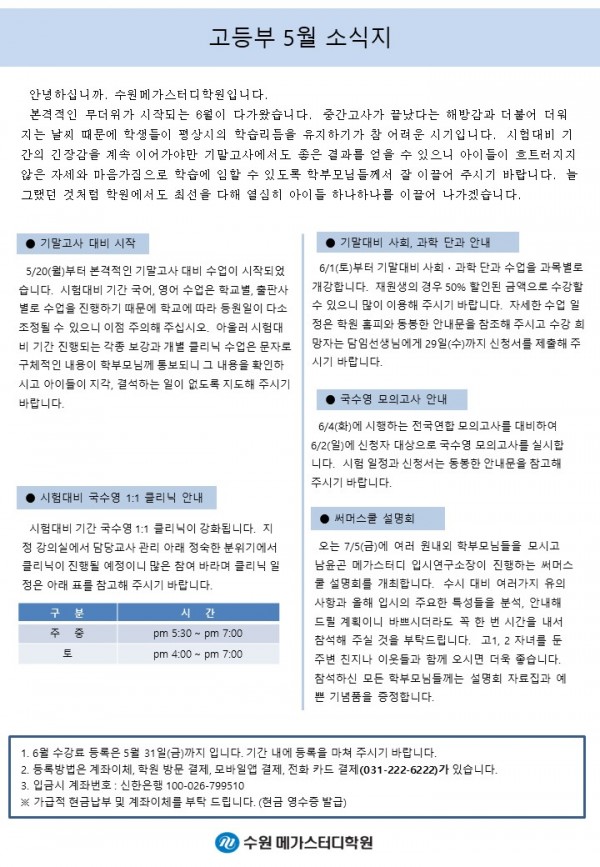 고등 [고등] 5월 가정통신문