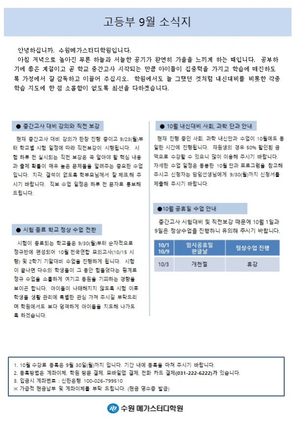 고등 [고등] 9월 가정통신문