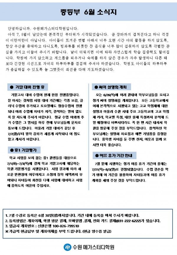 중등 [중등] 6월 가정통신문