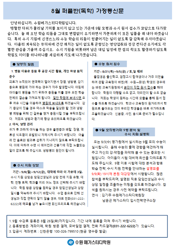 재수 [퍼플] 8월 가정통신문