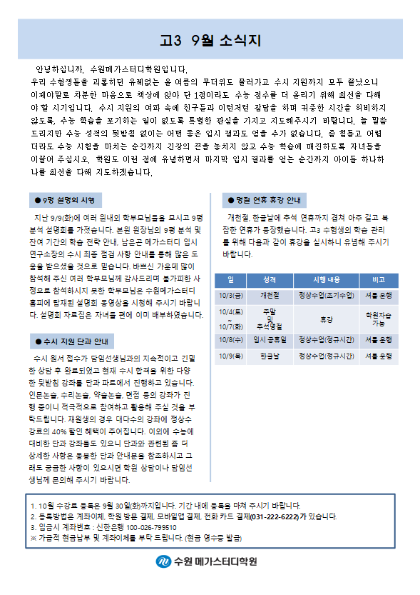 고등 [고3] 9월 가정통신문