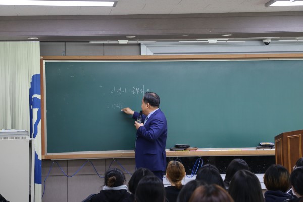 신종바이러스 감염증 우려로 인한 재수설명회 일정이 취소되어 재원생 대상으로 (주)메가스터디 손주은 회장님의 유익한 강연이 있었습니다.