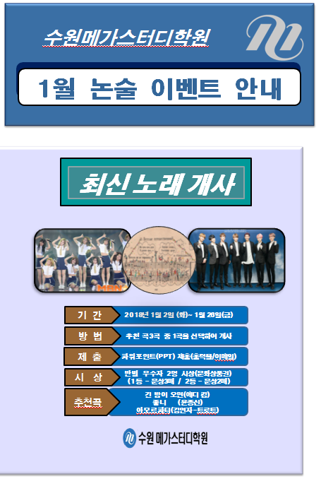 [ 수원메가스터디학원 중등부 1학년 논술 이벤트 (1월) 안내 ]