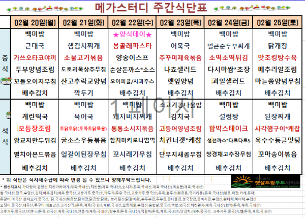 2월 3주차 식단표(2/20~2/25)